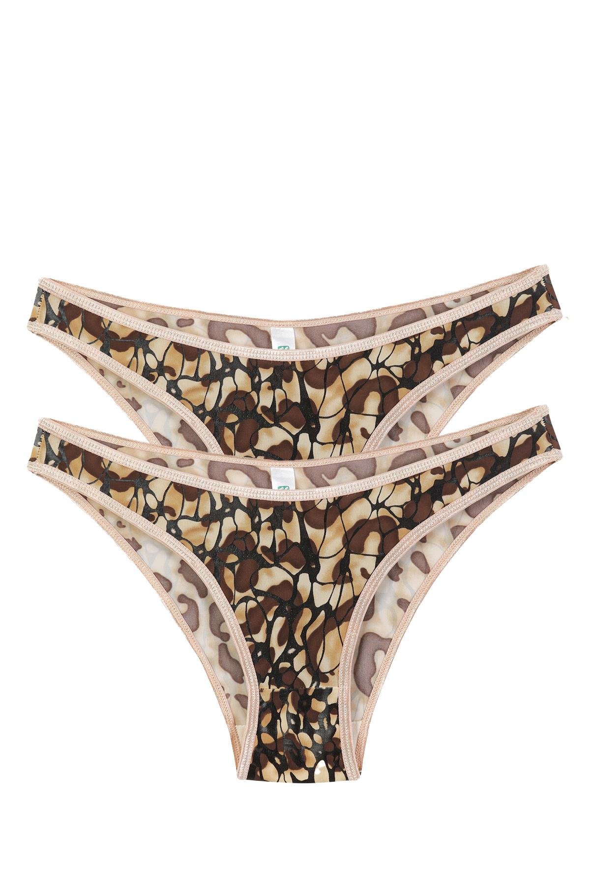 Şıklık ve konforu bir araya getiren bu 2’li slip seti, kahve tonlarında desenli tasarımıyla farklı bir stil sunar. Klasik slip kesimi sayesinde rahat bir kullanım sağlarken, modern ve feminen görünümüyle günlük iç giyimde şık bir alternatif oluşturur.